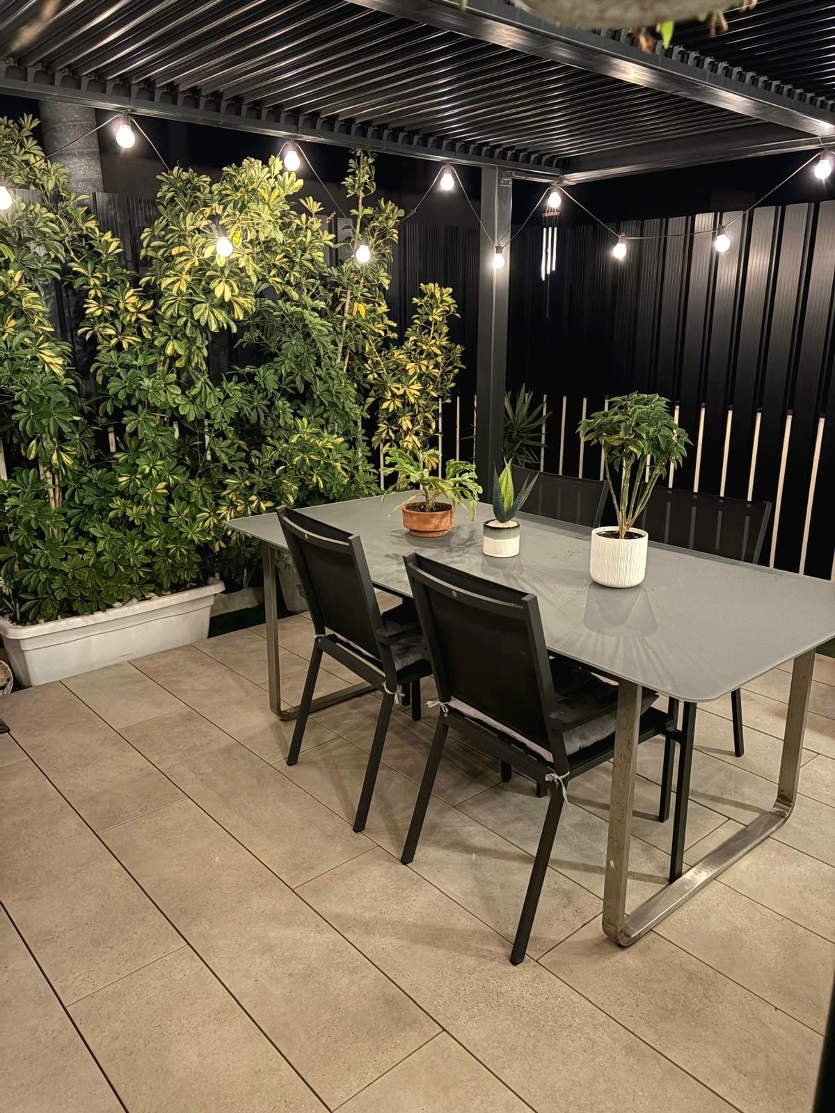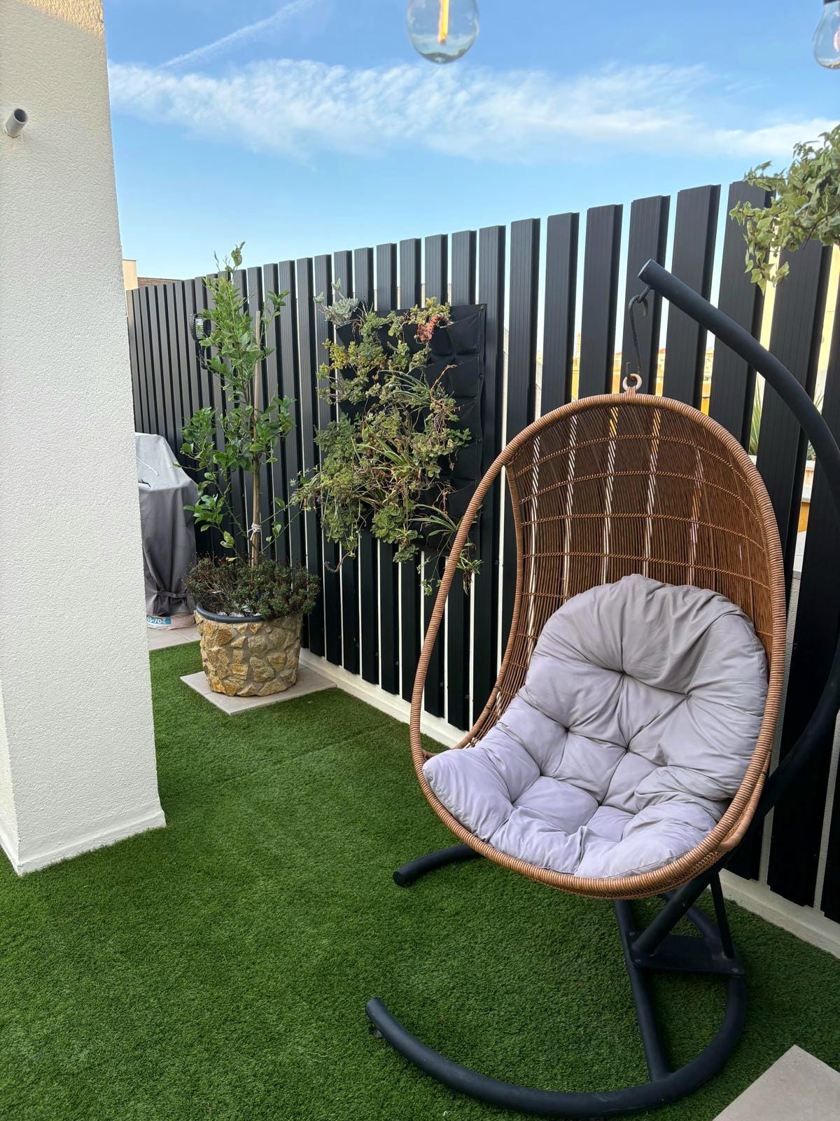 El salón tiene acceso a una terraza pequeña y otra más grande cubierta de césped artificial de primera calidad donde encontrarás un pequeño lavadero, una preciosa pérgola con tarima flotante y unas fantásticas vistas.